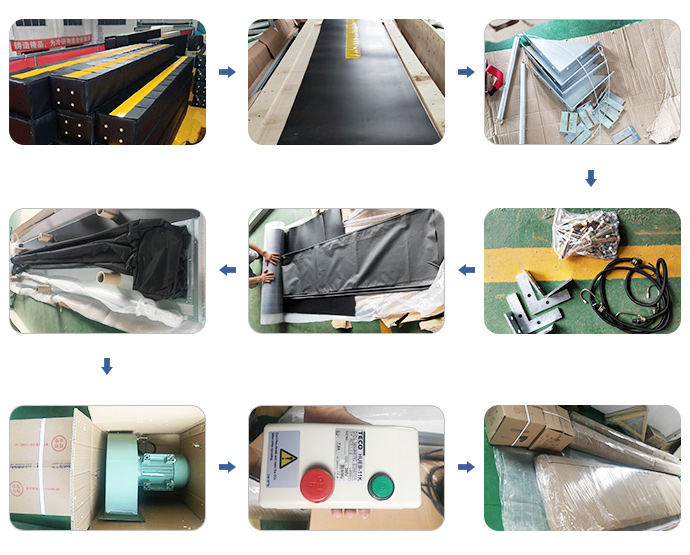 有頂部密封柱和兩個(gè)側(cè)密封柱。該材料為氯丁橡膠合成織物,密封柱為連續(xù)的圓柱形,由外部鼓風(fēng)機(jī)連續(xù)充氣,各部分設(shè)有平衡孔。因此,整個(gè)工作狀態(tài)將緊緊地包裹著卡車車廂。達(dá)到密封效果。