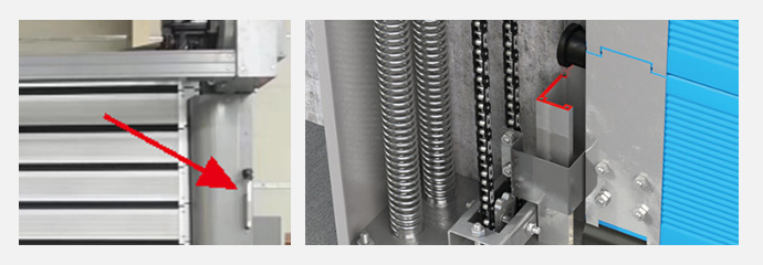 硬質快速門整體外觀;采用寶鋼鍍鋅板經激光切割、數控折彎而成的成型的渦輪系統、導軌系統、防護外罩,長久不生銹,外部美觀、防塵、輕松清潔傳動系統;一體式的傳動系統,使得門體兩側均勻受力,整體運行通暢。