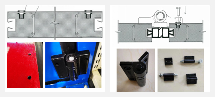 A.門板與鉸鏈之間的連接采用嵌入式鉚釘螺母的設計,門體上的連接硬件均采用嵌入式鉚釘螺母。這種設計增加了使用的耐用性,并防止了螺釘的松動。鍍鋅防盜螺釘